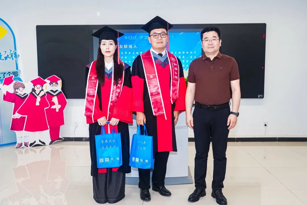 随后,校友联络人刘子青、王嘉禾同学作为代表登台,校友办公室主任李文强老师向他们赠送了承载着学部深厚情谊的专属纪念品,寓意着毕业生们将永远与母校、与学部血脉相连。