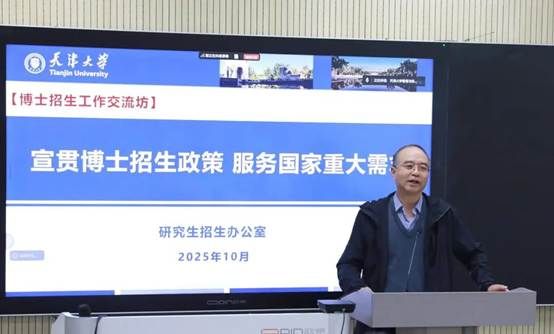 陈涛老师以“宣贯博士招生政策 服务国家重大需求”为题,围绕招生考试方式、招生计划分配、专项计划类型、科研育人费管理及招生纪律要求等内容,进行了系统解读,帮助与会教师全面把握政策要点。