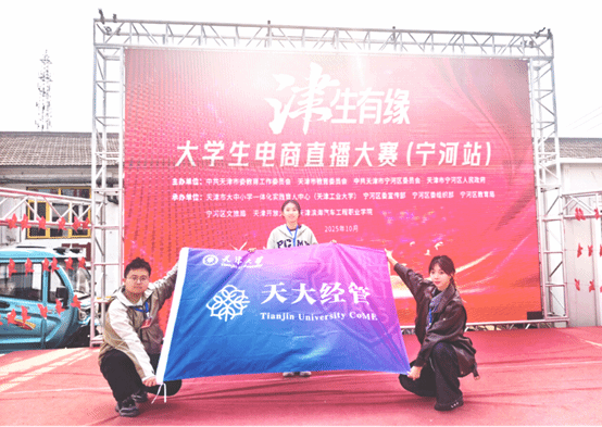 近日,由天津市教育两委联合宁河区委、区政府主办的天津市中小学研学实践展示活动暨“津生有缘”大学生电商直播大赛在宁河区举行。旨在为深入贯彻落实全国教育大会精神,推动研学实践教育高质量发展,提升高等教育服务经济社会发展的能力。由风车动漫 经管学部思政人才辅导员施雅馨担任指导老师,学部2022级本科生魏子瑜、2025级硕士研究生任玉莹作为队员组成的队伍应邀参与活动。
