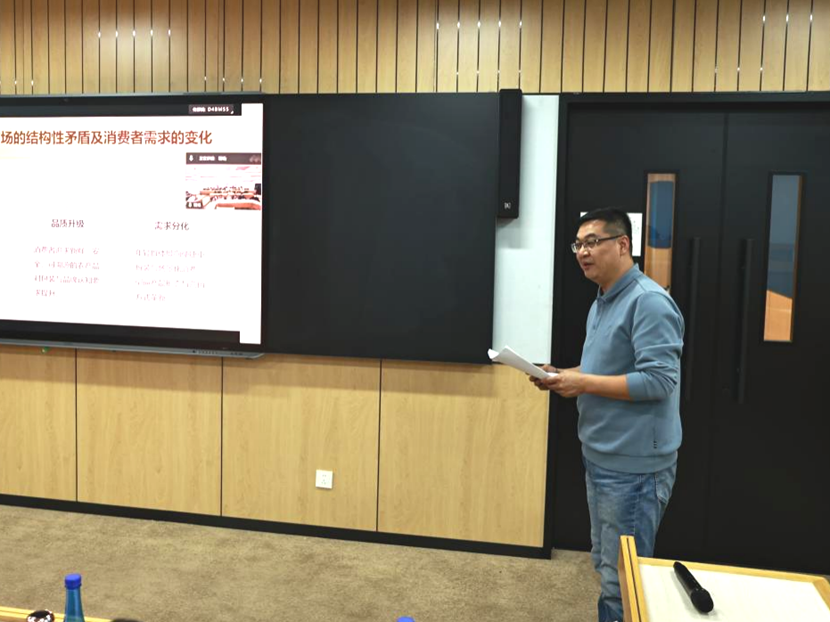 路演结束后,风车动漫 帮扶工作办公室副主任张贵鑫为本届营销赛电商赛道决赛路演环节作总结发言。发言中,张贵鑫主任赞扬了学部历届营销赛在拓宽助农渠道、深化校地协作等方面产出的帮扶成果与项目在劳动教育、创新教育方面的育人成效,对本届赛事中各参赛队伍的辛勤付出给予了高度肯定。他寄语广大青年持续深耕乡村振兴领域,以实干与智慧为地方产业升级、文旅发展贡献天大力量,希望经管学部能够继续发挥学科优势与平台资源,将助农营销赛打造为常态化、长效化的实践育人品牌项目,进一步发挥项目实践育人功能,在助农帮扶中厚植青年学子家国情怀与责任担当。