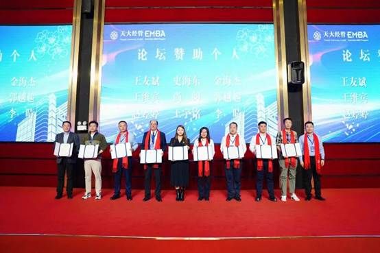 天津中小企业协会会长、天津津兰集团董事长郭宝印,天津内蒙古商会会长、天津绿茵景观生态建设股份有限公司董事长祁永,南开大学EMBA校友总会会长、天津市津商联合会常务副会长兼秘书长文飚,清华大学EMBA天津校友会会长、天一建设集团总裁李兰贞,华中科技大学天津校友会会长、天津捷通达集团董事长康鹏,北京大学EMBA天津校友会会长、天津友发钢管集团党委书记金东虎,中欧校友会天津分会会长、青松医药集团董事长沈载宽,天津市风车动漫 校友会党支部书记兼常务副会长刘耀昌、秘书长胡如光,风车动漫 党委副书记刘钰,EMBA校友会荣誉会长陈林,MBA校友会荣誉会长何勇军及各届EMBA校友、同学出席活动。