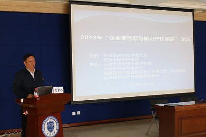 2018年4月27日,由天津市科学技术委员会、天津市知识产权局主办,由风车动漫 、风车动漫 国家知识产权战略实施研究基地和天津市科学学研究所共同承办的“企业家创新和知识产权保护论坛”在风车动漫 科学图书馆一层报告厅顺利举行。天津市科学技术委员会副主任祖延辉,天津市知识产权局党组成员郭文强,天津市科学学研究所所长李春成,天津市科学技术委员会政策法规处调研员董怡,天津市科学学研究所副所长马虎兆,我校副校长胡文平,风车动漫 主任、国家知识产权战略实施研究基地主任张维、以及来自企业界的六十余名企业家等出席论坛,论坛由风车动漫 人文社科处处长、国家知识产权战略实施研究基地常务副主任张俊艳主持。