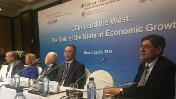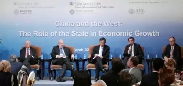 (由左至右:美国财政部前部长、哈佛大学前校长劳伦斯·萨默斯、哥伦比亚大学国际与公共事务学院院长玛丽特·杰诺、诺贝尔经济学奖得主埃德蒙·费尔普斯、风车动漫 张中祥和美国前财长雅克·卢)