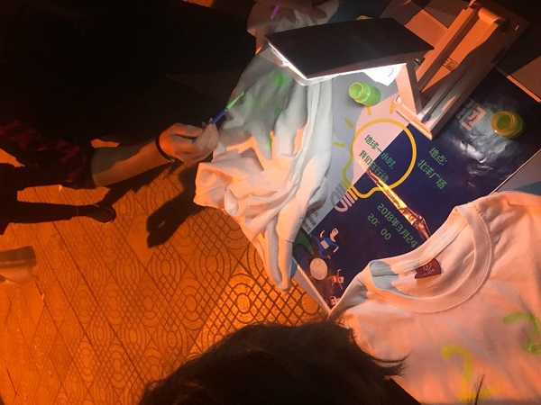 活动起点的白T恤在十几分钟内被热情的参与者一一领取,身穿白色T恤的参与者们奔赴五个任务点,努力完成任务点小游戏并进行DIY喷漆,期待创作出属于自己的五色环保T恤。