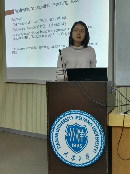 对外经济贸易大学国际经济贸易学院副院长、孙冶方经济科学奖获得者裴建锁副教授做了题为“全球与地方环保需求——基于北京的减缓气候变化的实验研究”的报告。中国对于减缓气候变化这一公共品的贡献不仅有公共品的属性,还具有减少雾霾、改善居民健康等协同效应,这可能在一定程度解释了其在相关政策讨论中的积极姿态,但这种动机是否有微观基础呢?裴教授与合作者采用准田野的实验方法,在保证内部有效性的同时,更大限度的兼具外部有效性。通过对北京受试者关于二氧化碳排放权支付意愿、价格弹性等方面的研究,得出了以下结论:首先,该研究首次揭示了气候减缓措施的协同效应这一事实可以从个体决策中观测到,但愿意支付的价格较低;其次,为了区分公共品和当地环保需求的支付意愿,设计了北京和深圳两地的碳排放权购买选项,对愿意支付价格的最低值给出了估计,结果显示北京居民对当地环保需求有更高的支付意愿;最后,估计了不同因素对支付可能性的影响并对价格弹性进行了测算,观测到发达国家(弹性较低)与发展中国家(弹性较高)价格弹性相差较大这一问题,拟在接下来的研究中进行深入探讨。在展示的过程中,裴教授简要介绍了理论探讨公共品的纯公共品和准公共品属性对支付意愿的影响(碳减排是典型的具有协同效应的公共品)以及真实支付意愿(通过实验的方法得出)和填报的支付意愿区别与联系等相关的文献,详尽地讲授了实验原理、方法及对应的现实含义。通过前期调研、分层抽样、发放邀请函、电话注册等过程,共募集317位实地实验参与者,最大限度的保证实验的科学性和代表性。