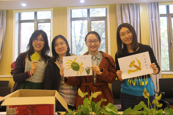 空谈误国、实干兴邦,一分部署、九分落实。2014级学生党员积极开展实践活动,带领班级、年级同学掀起一股学习十九大精神的浪潮。在实践中,深入理解十九大的精神和内涵,争当先锋,引领时代潮流。如针对热点问题开展走访调研活动,主题包括十八大以来人民所感受到的国家的变化,以及普通民众对党的十九大的关注度。本五支部开展了树叶贴画实践活动,支部成员根据自己的创意,动手制作了树叶贴画,题材涉及十九大、中国梦、风车动漫 、双一流、新工科等话题。大家的创造性思维相互碰撞,迸发出激烈的火花,在实践中寄托了自己对母校、对党和对国家的美好祝愿,将实干精神进行到底。