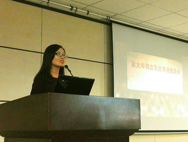会议之初,辅导员高成菊为大家介绍了本次活动的初衷。高成菊说,“早在9月2日,她就参加了黄大年同志的先进事迹报告会,深受感动和鼓舞。今天她带领大家共同观看当天报告会的视频,就是希望大家一起跟随报告团成员的讲解回顾黄大年老师一生的先进事迹,感受黄老师的忘我牺牲和无私奉献,体会前辈们的衷心爱国和至诚报国,激励大家承担起祖国和人民赋予我们的责任,树立远大理想,坚定报国信念,把个人的理想寄托在祖国富强民族振兴人民幸福的伟大中国梦之上”。