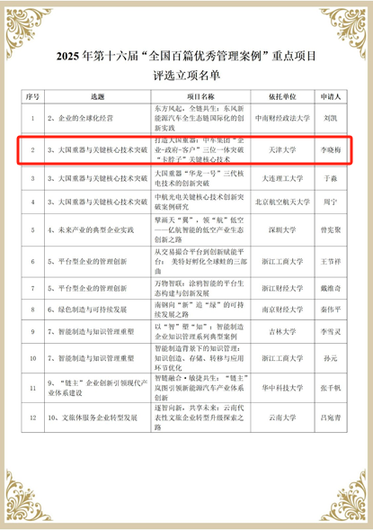 全国工商管理学位研究生教育指导委员会自2010年发起"全国百篇优秀管理案例"(简称"百优案例")评选,历经十六年,已成为学界公认的中国管理案例领域的最高奖项,并于2012年被正式纳入教育部学科评估指标体系。作为本土管理案例的优秀代表,该评选2018年起增设重点项目,旨在推动高校、企业及研究机构深度聚焦中国企业管理实践的重点现象、主要问题和关键因素,系统提炼具有理论创新和实践价值的原创成果,为中国特色管理理论体系构建、赋能企业高质量发展提供重要支撑。《第十六届“全国百篇优秀管理案例”评选重点项目申报指南》自2024年12月发布以来,经过初审、重点项目专家委员会函审以及立项答辩环节的严格评审,最终12个项目获得立项。