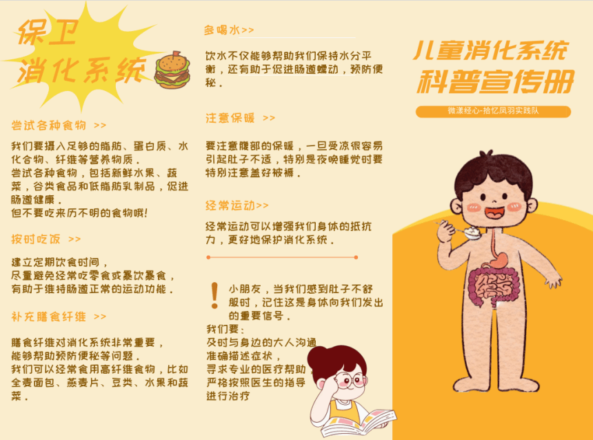 在医疗科普方面,实践队因地制宜,针对当地儿童和居民对消化系统疾病认识不足的问题,举办专场健康课堂,向孩子们普及消化系统的基本知识和保护方法。同时,为了扩大影响范围,实践队设计并发放了一系列医疗宣传资料,旨在提高全村居民的健康意识和饮食习惯,促进凤羽镇向“健康乡村”不断迈进。