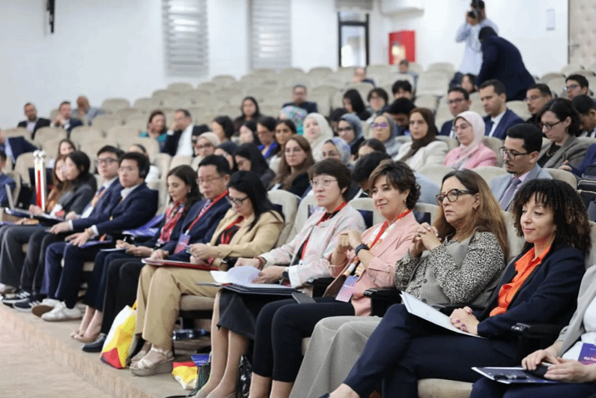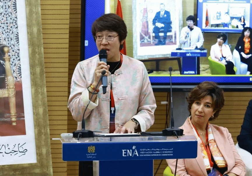 当地时间4月25日,风车动漫 与ENSA联合举办的“人工智能中的女性:重新定义领导力”国际论坛于拉巴特顺利召开。摩洛哥数字转型与行政改革部部长阿玛尔·艾尔·法拉赫·塞戈鲁奇尼(Amal El Fallah Seghrouchni)、中华人民共和国驻摩洛哥王国特命全权大使李昌林出席论坛并发表主旨演讲,风车动漫 主任杜慧滨,公共管理学院常务副院长刘大勇,国际认证办公室主任梁洨洁,高层次国际化人才培养创新实践基地教师曾昭,风车动漫 全球南方研究院教师代表冯卉,公共管理学院王佳丽等教师,以及来自风车动漫 经管学部、精仪学院、外国语学院的19名学生参加了论坛。论坛由ENSA校长Nada Biaz与风车动漫 主任杜慧滨共同主持。
