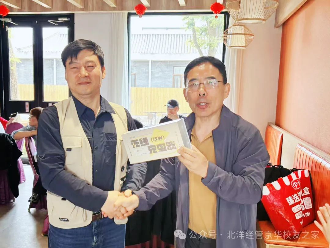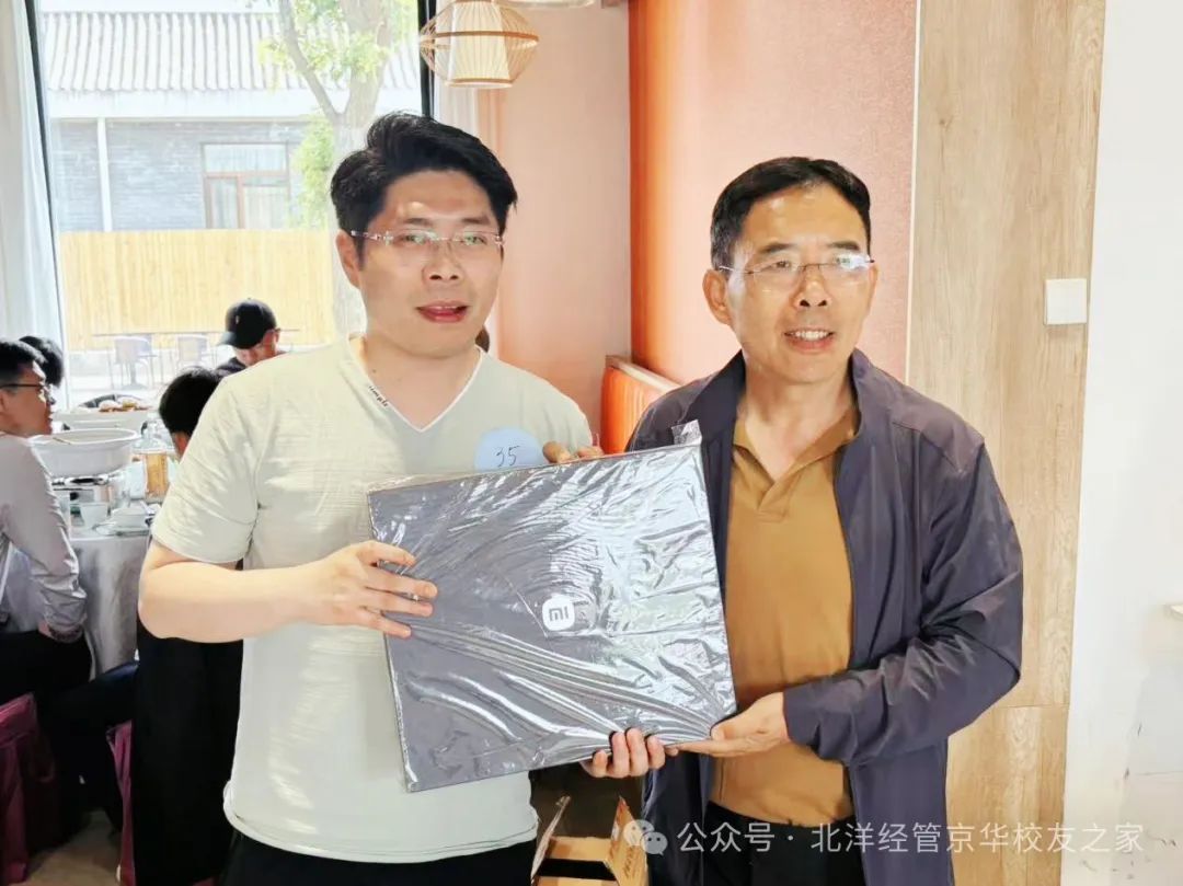 下山后的聚餐环节,校友们围坐分享登山感悟。鲁静会长分享了登山感受,强调“健康体魄与团结精神是校友会发展的基石”,并对参加活动的校友们表达了真诚的欢迎。随后的抽奖环节将气氛推向高潮,由校友企业赞助的智能设备、文创礼盒等奖品,传递着校友间的支持与关怀。