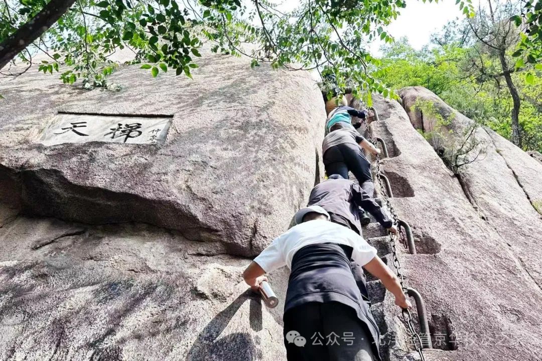 上午9时,校友们齐聚有“京西小黄山”美称的凤凰岭山脚。恰逢京城一场春雨过之后,凤凰岭的空气分外清新,浸润在浓度达市区150倍的负氧离子中,校友们走过长长的林荫道,率先向被誉为华山之险的“天梯”进发。这条近乎垂直的崖壁栈道镶嵌在花岗岩山体间,校友们手脚并用地攀越铁索,耳畔是山风掠过千年古松的簌簌声。沿陡峭的“天梯”向上,途经“奇石阵”“仙人洞”等标志性景观,奇山、怪石、林海、神泉等自然奇观与千年人文积淀,一幅独特的山水画卷缓缓向我们展开。