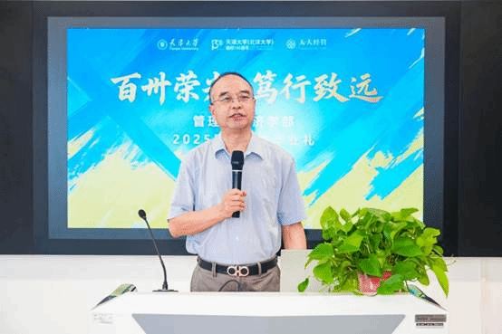 张连营教授表示,在这庄重而喜悦的时刻,作为学部博士生导师之一,感到无比的骄傲与欣慰。回望大家在天大、在学部走过的求学之路,他深知每一段成长的背后,都伴随着无数的努力与坚持。大家的学术成果和个人进步,正是作为导师最为骄傲和欣慰的时刻。张连营提到,希望大家在科研的路上勇敢探索,未来无论身处何方,都保持学术的初心,传承经管精神,勇立时代潮头。