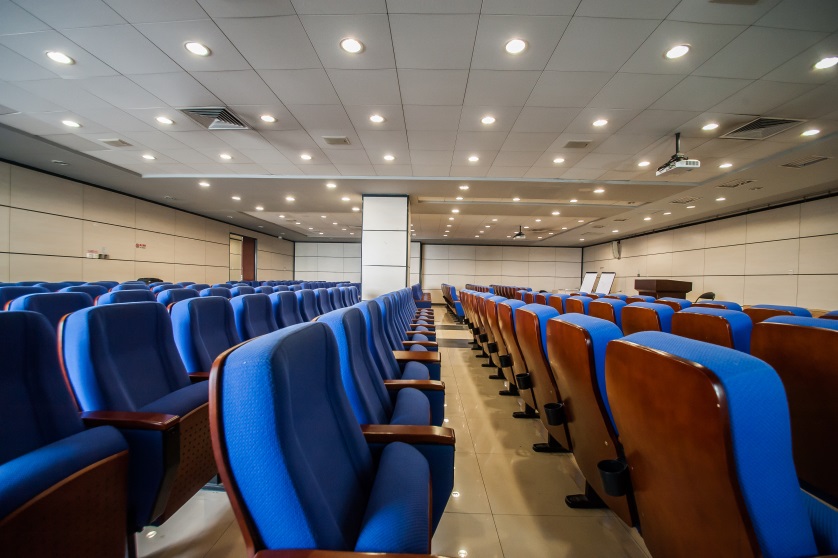经管学部报告厅拥有齐全的多媒体设备,主要用于大型学术讲座、会议、学生活动。报告厅建筑面积约为220平方米,拥有剧场式席位约180个。