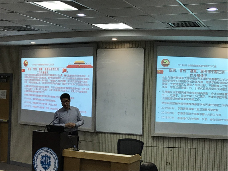 述职结束后,马寿峰针对本年度教工党支部工作开展情况进行总结,他指出,2019年,学部党建工作有一定提高,一是各支部以巡察整改、主题教育为契机,不断加强支部建设;二是支部理论学习更加系统,通过结对共建、集体学习等方式,确保“两学一做”常态化制度化;三是各支部将党建工作和中心工作结合,相互融合,相互促进。但目前支部建设过程中仍存在一些问题:一是形式和内容问题,目前各支部组织生活形式与内容结合的还不够紧密,仍存在理论和实际相脱节的问题;二是主动性和参与性问题,个别支部的活动和党员的出勤率还不高,党建工作的规范性还需要不断加强。此外,马寿峰还对2020年支部建设提出要求:第一,支部书记和委员还需要进一步提高政治站位,发挥党建工作在学部的引领作用,把思想教育贯穿到各个环节,落实好立德树人的根本任务。第二,要理直气壮的抓党建,底气十足的管党员,党建工作要引领中心工作,管方向、抓大局,加大工作力度,夯实工作基础,真正做到为党育人,为国育才。