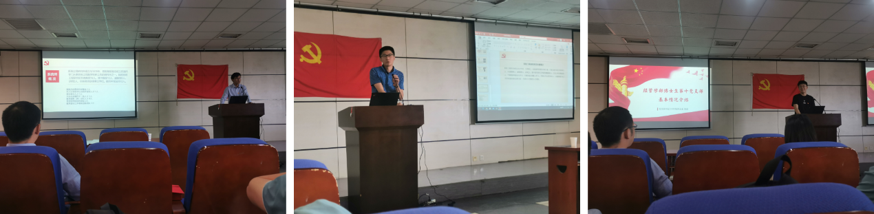 博士生第十党支部书记荣睿从支部组成、支部活动和工作计划三个方面介绍了学生党支部的基本情况。