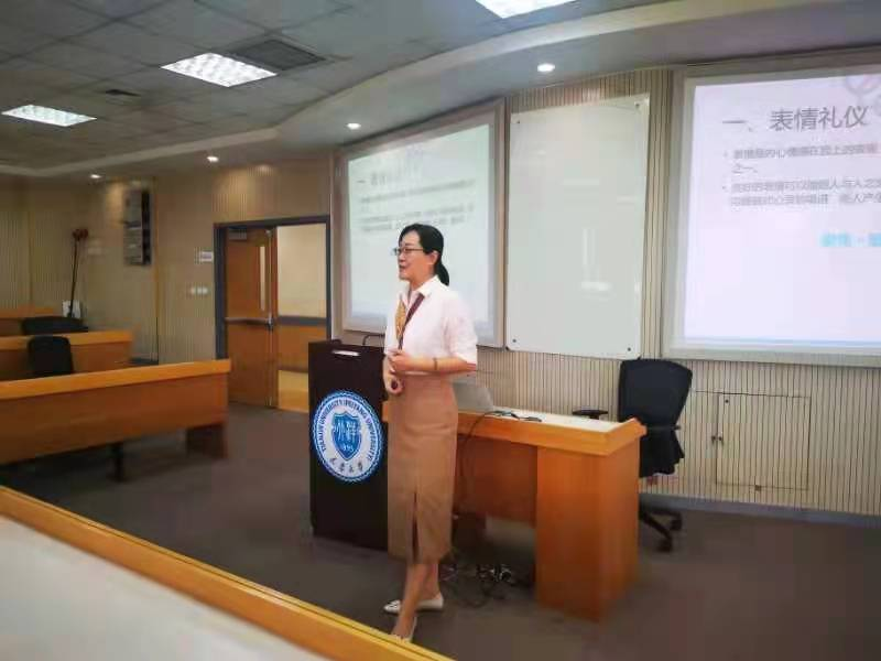 人民教师承担着教书育人的重要职责,全社会对教师的形象有较高要求。教师仪态、仪表、谈吐的水平不仅直接影响着学生的行为,更涉及到学生是否能“亲其师,进而信其道”。随着院校对外交流的日益增多,商务礼仪、社交礼仪也是学校管理者必须学习的课题。刘莉君老师首先分享了教师职业注重礼仪、形象的重要性,然后从仪态、仪容、仪表三个方面详细讲解了作为一名教师应该掌握的礼仪规范。在轻松的氛围和充分的交流互动中,老师们认识到教师形象礼仪的重要性,学到了相关知识,强化了服务师生的意识。