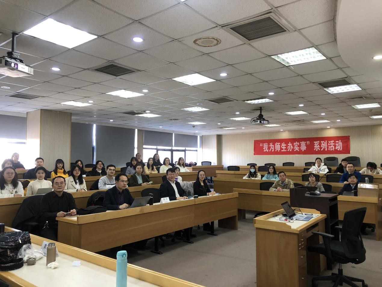 之后,综合服务中心第三党支部任怡璇向大家展示了近两年运营与供应链管理系的本科生毕业去向,系所教师担任专业导师情况和系所业界导师情况,并表示希望和系里共同努力,进一步提升教育合力,多措并举促进班主任队伍作用发挥、提高专业导师队伍指导实效、拓宽业界导师覆盖范围,将全员育人落到实处。