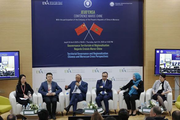 On April 24, the forum "Territorial Governance and Regionalization: Chinese-Moroccan Cross-Perspectives" was held in Rabat. Jointly organized by the Higher National School of Administration of Morocco (ENSA), College of Management and Economics (hereafter called CoME) in TJU, and the Beijing Municipal Party Committee Party School (Beijing Administration Institute), the forum featured addresses by ENSA President Nada Biaz, H.E. Li Chang-lin, Chinese Ambassador to the Kingdom of Morocco, and Professor Du Hui-bin, Dean of CoME at TJU. The forum focused on topics including regional development and the role of higher education in local governance, actively sharing and discussing both sides' experiences in public governance while jointly exploring innovative development pathways.