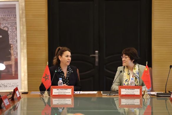 On April 23, a team led by Dean Du Hui-bin arrived at the Higher National School of Administration of Morocco (hereafter called ENSA) to initiate in-depth cooperation in public administration. ENSA President Nada Biaz extended warm welcome, noting China has become the first country besides France and Belgium to establish student exchanges with ENSA, and expressed hopes for building long-term partnership.
