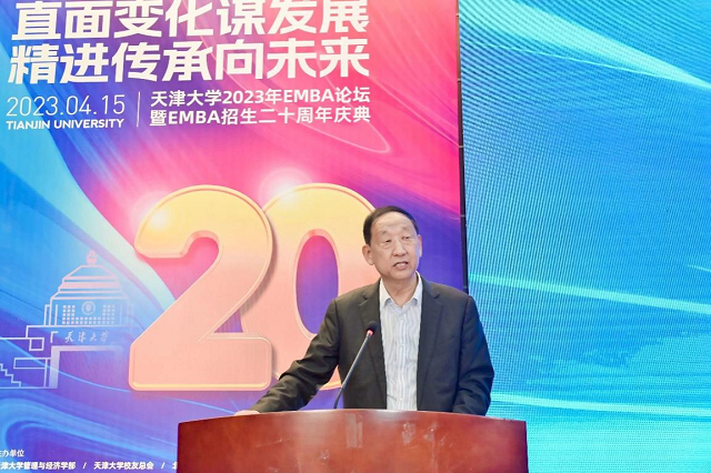 On April 15th, as part of the series activities to commemorate the 100th anniversary of Mr. Liu Bao's birth, the TJU 2023 EMBA Development Forum and the 20th anniversary celebration of EMBA enrollment with the theme of "Facing Changes for Development, Refining Heritage for the Future" was successfully held in Tianjin University