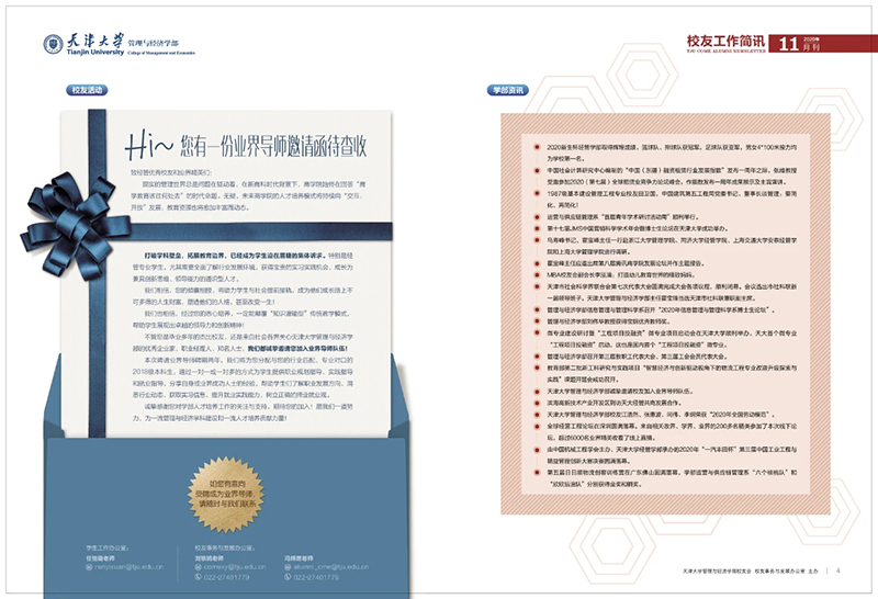 我们每月会向您的邮箱中发送一封校友工作简讯,与您分享校友工作的最新进展和学部最新资讯。如果您暂未收到来自校友办的问候,请发送您的个人信息(姓名、联系方式、入学年份、班级、工作单位和职务)到[email protected]更新邮箱信息。